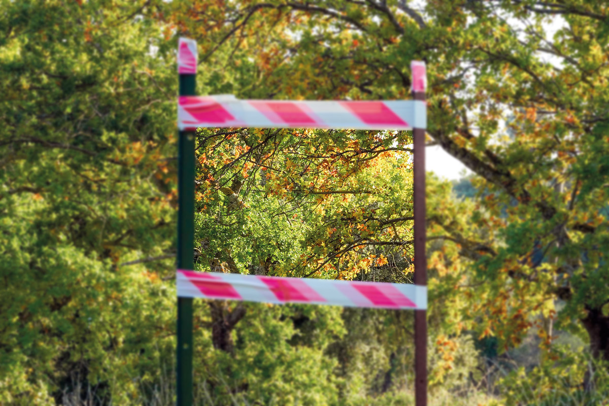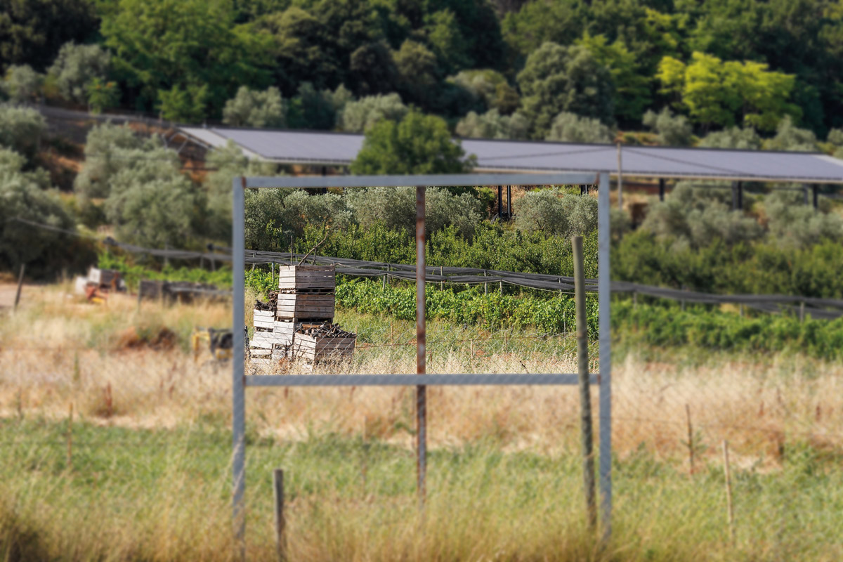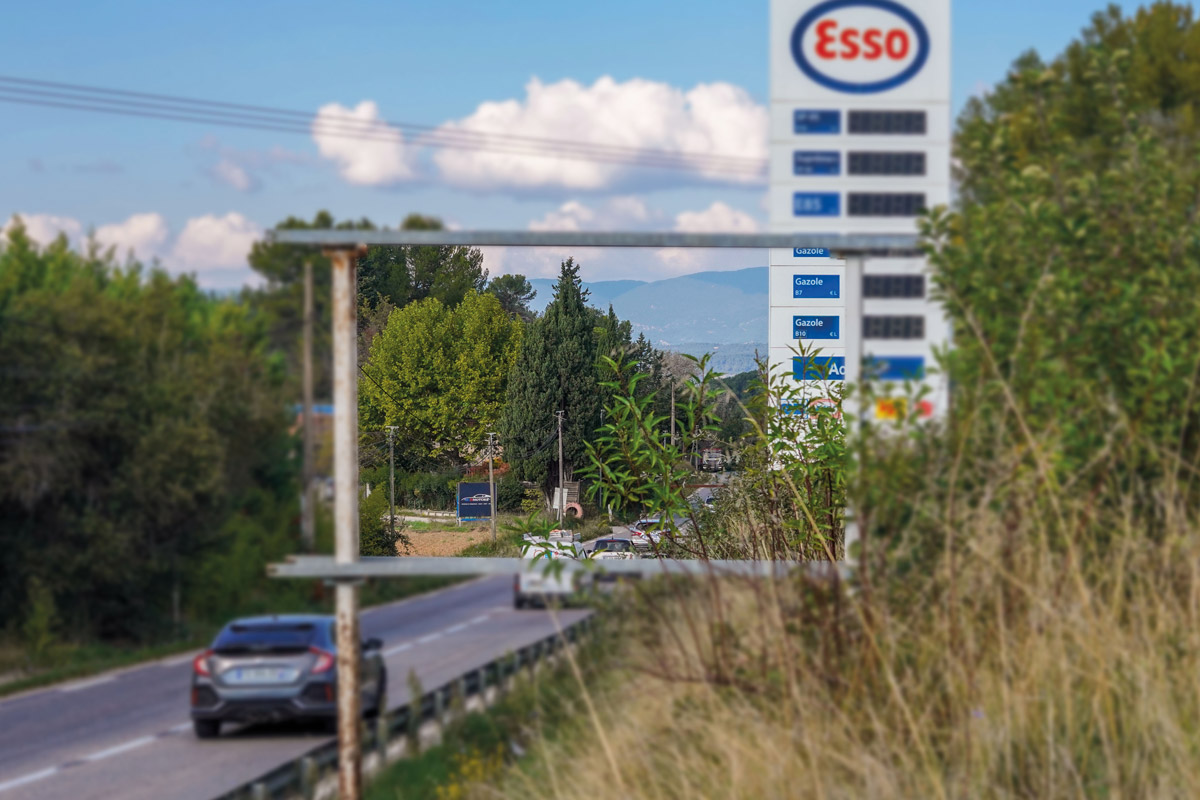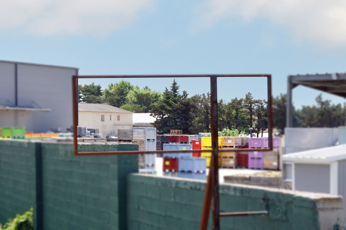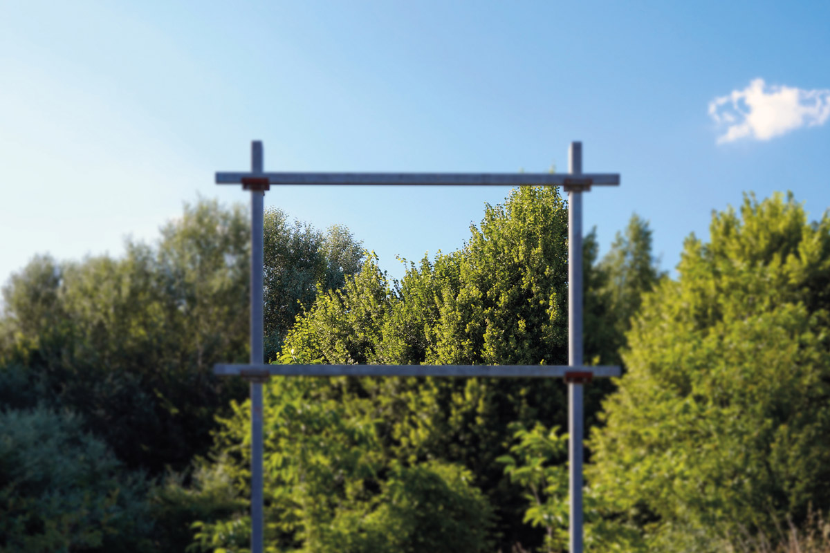 Each photograph corresponds to an empty frame found within the landscape. This frame might be an old, emptied display stand, the skeleton of a sign, a permanent or temporary structure, and so on. This frame thus defines a composition for the artist, leaving very little room for their subjectivity, choices, or decisions—in short, everything that underlies an artistic gesture. However, there are micro-spaces of freedom at the margins, and it is precisely within these that the artist works.