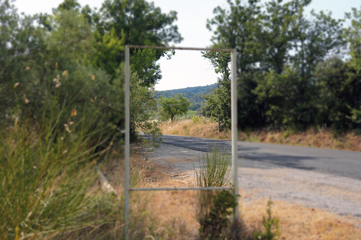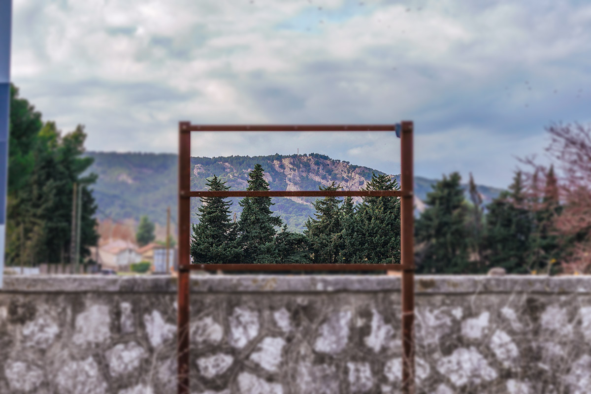 Chaque photo correspond à un cadre vide trouvé dans le paysage. Ce cadre peut être une ancien support d’affichage vidé, le squelette d’une signalétique, une structure pérenne ou temporaire, etc…